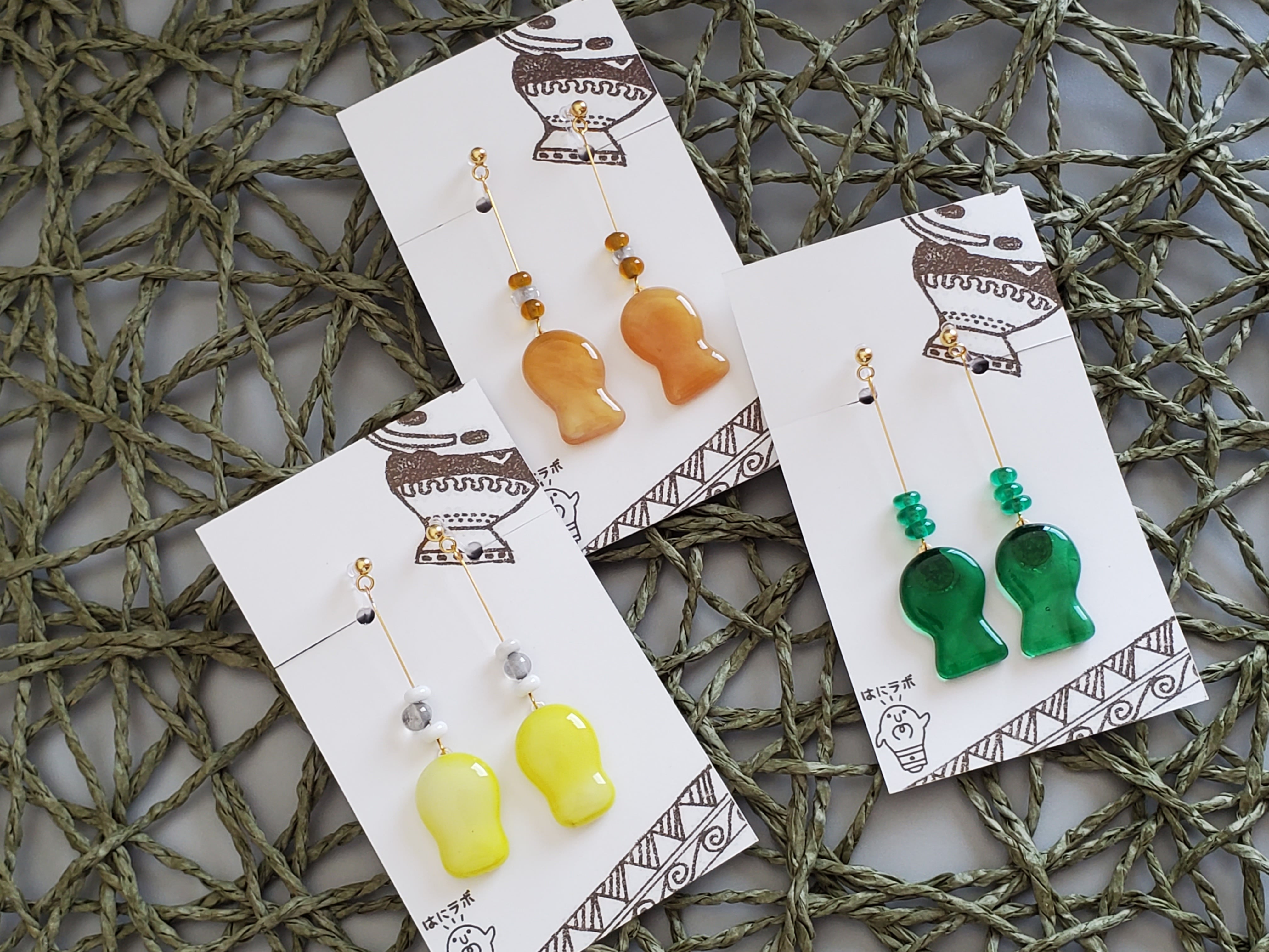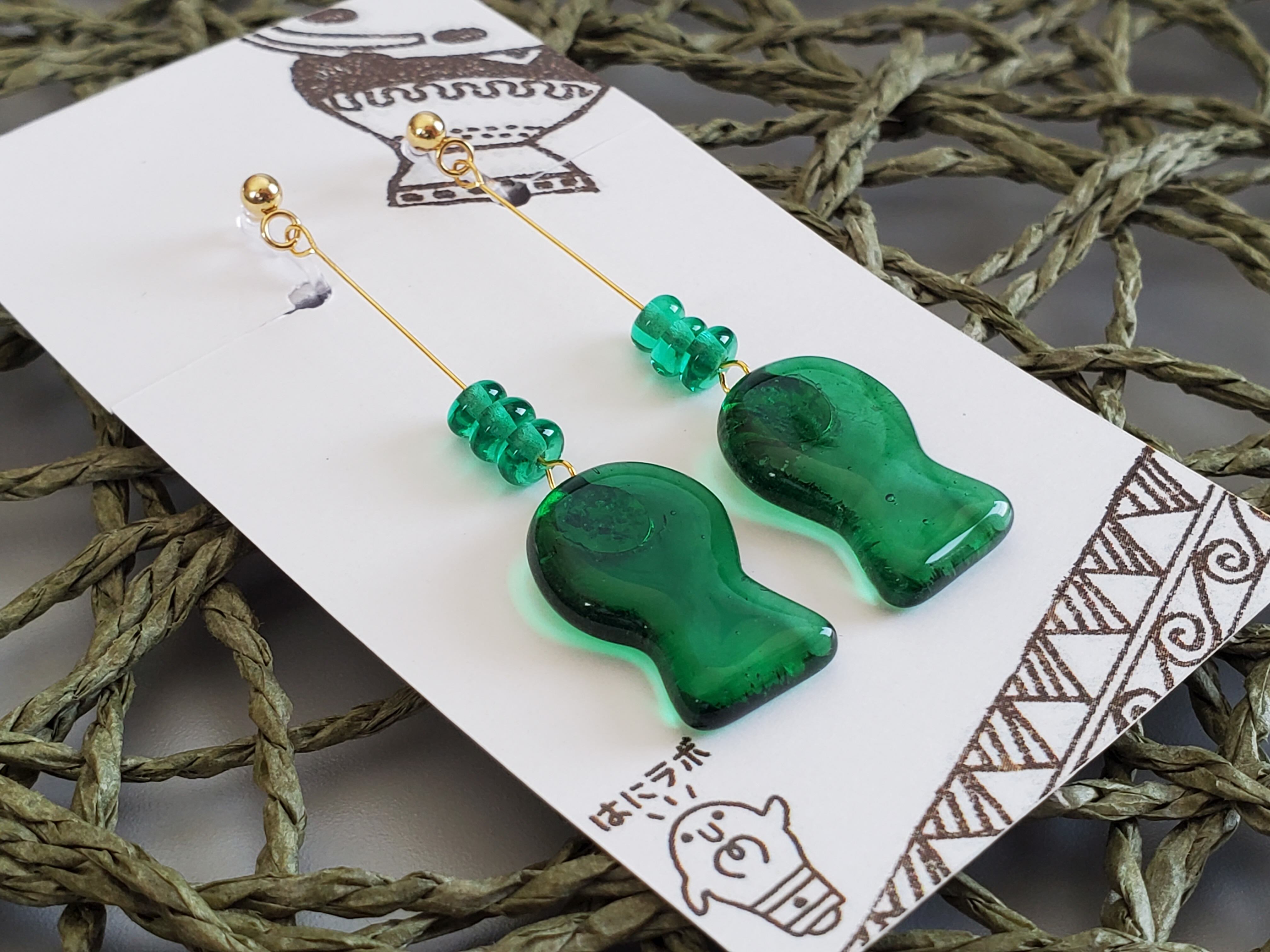 ゴールドの長め9ピンを使用し、ゆらゆら揺れる古墳イヤリング