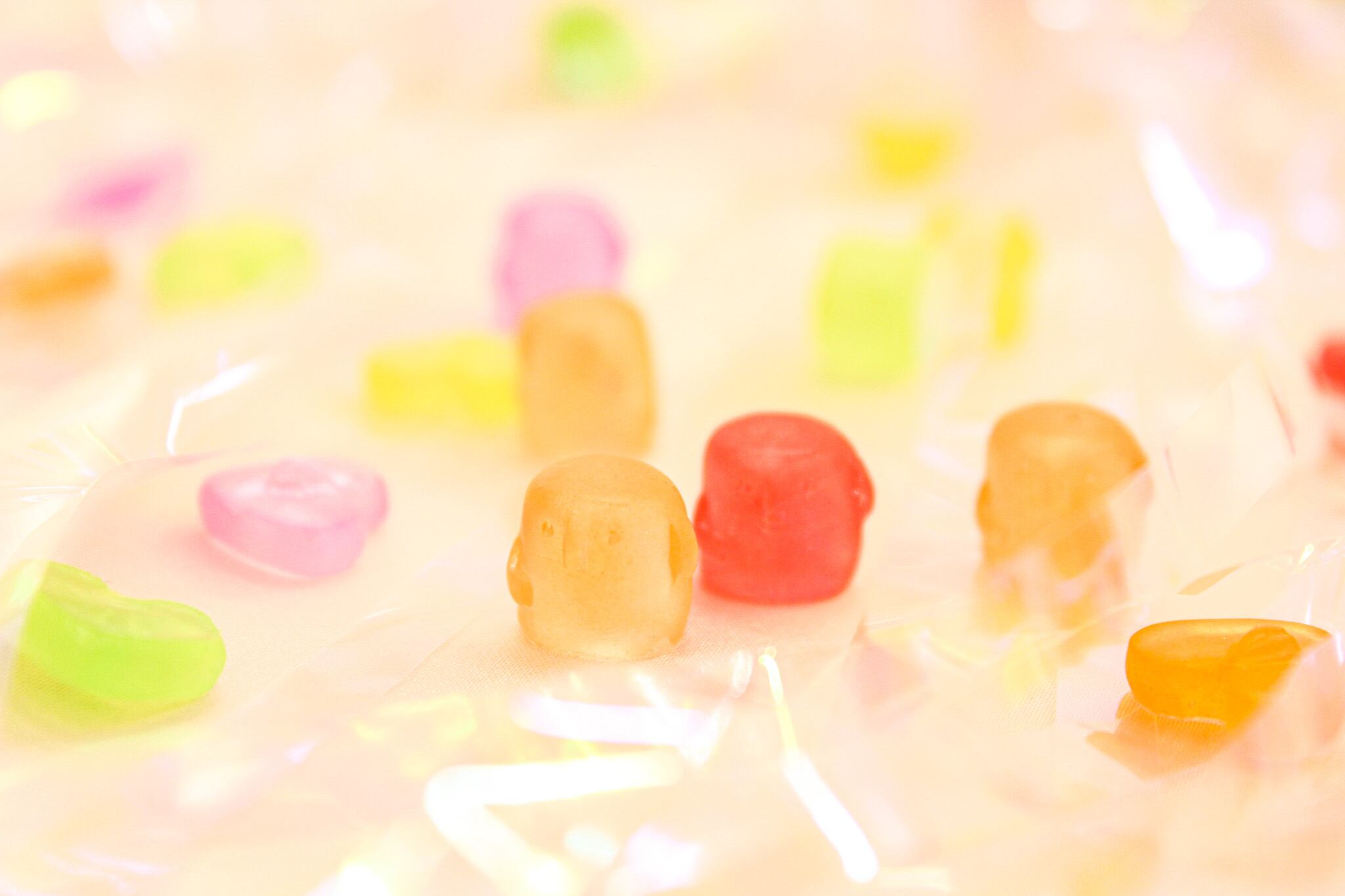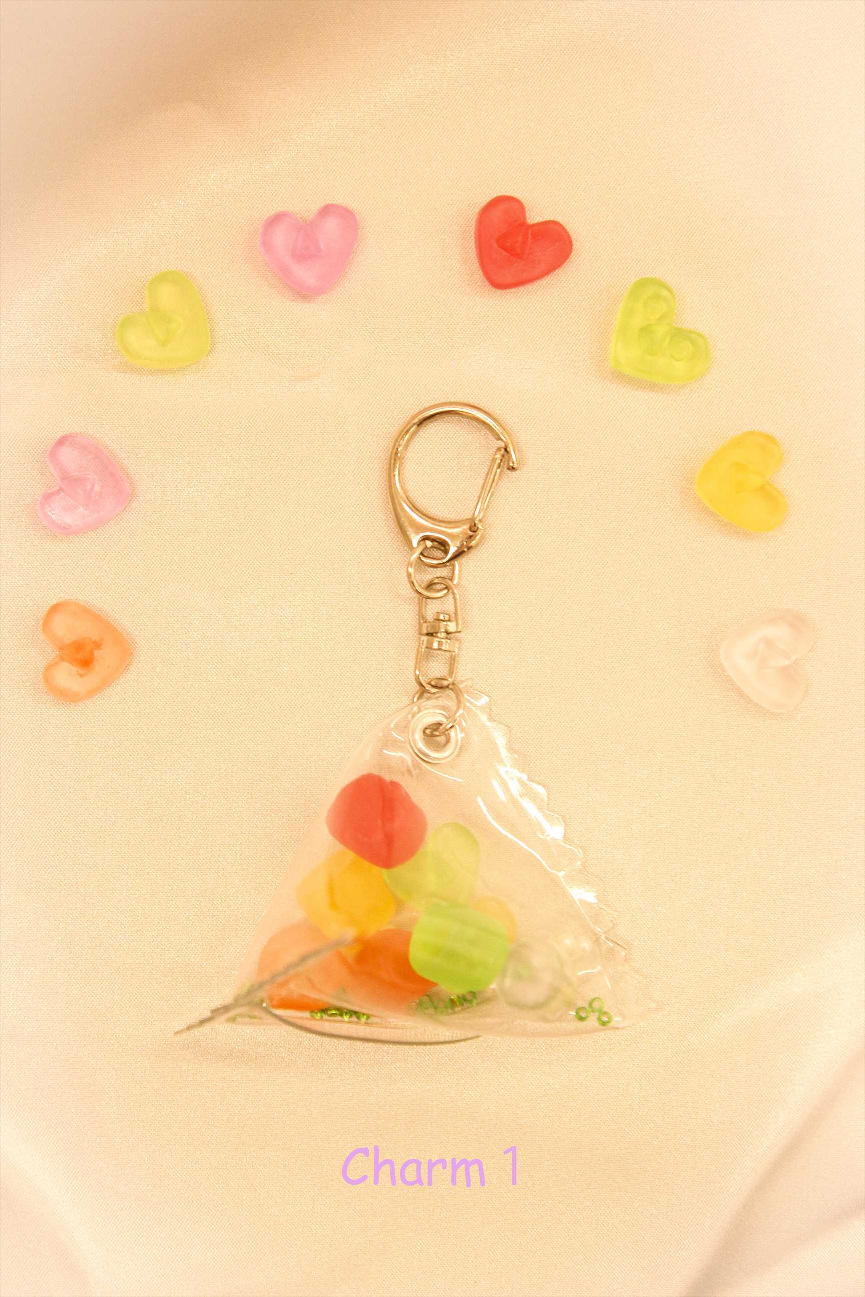 ハート形土偶やはにわ達をグミ風にして、袋に詰め込みました。